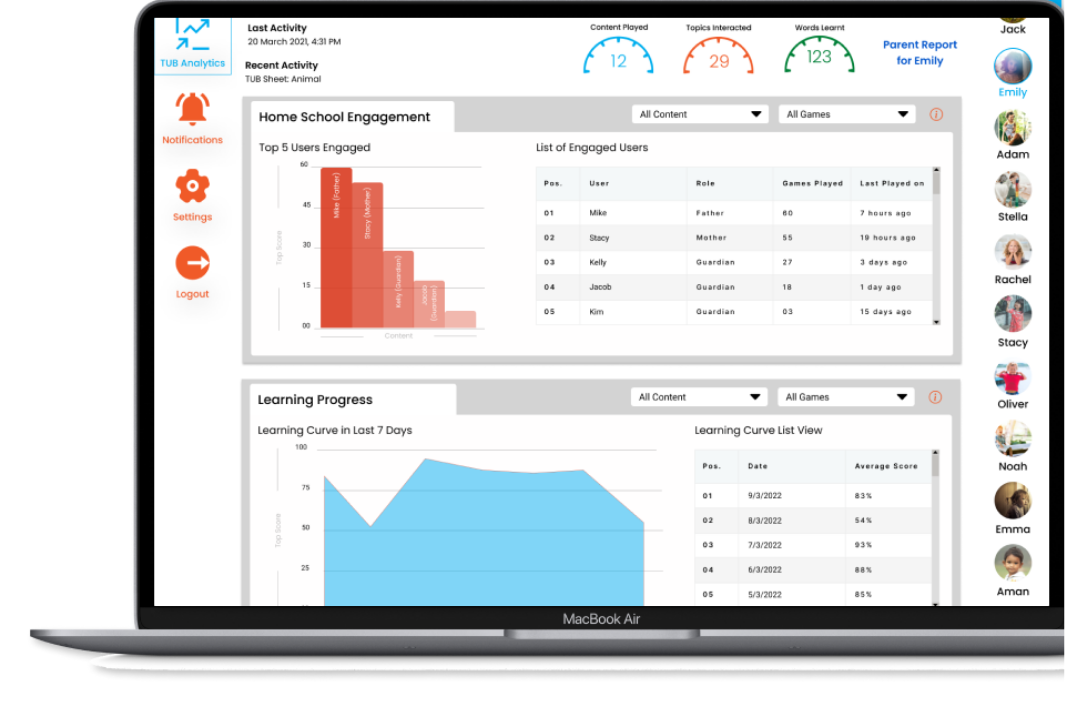 Help your child’s achievements and growth with up-to-date insights and analytics